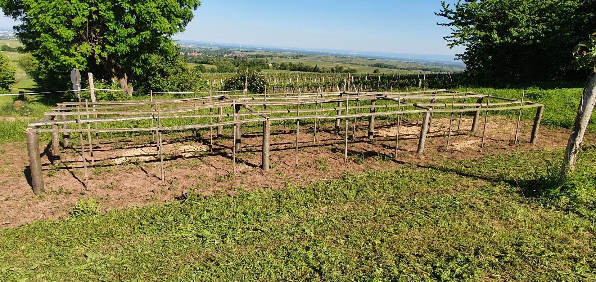 Am neuen Kastanien-Erlebnisweg ist mit viel ehrenamtlichen Einsatz eine Erlebnisstation entstanden. Es ist eine von zahlreichen Stationen an dem Wanderweg, die die unterschiedlichen Bedeutungen der Edelkastanie veranschaulichen sollen. Im Weinbau wurde früher Kastanienholz für die Rebenerziehung in Form eines sogenannten "Kammertbau" verwendet. Dies veranschaulicht die neu geschaffene Erlebnisstation, die in einem Gemeinschaftsprojekt der Ranschbacher Winzer errichtet wurde. Gemeinsam mit weiteren Helfern wurde der Holzrahmen errichtet und 27 Reben der pilzwiderstandsfähigen Rebsorte "Sauvignac" angepflanzt.